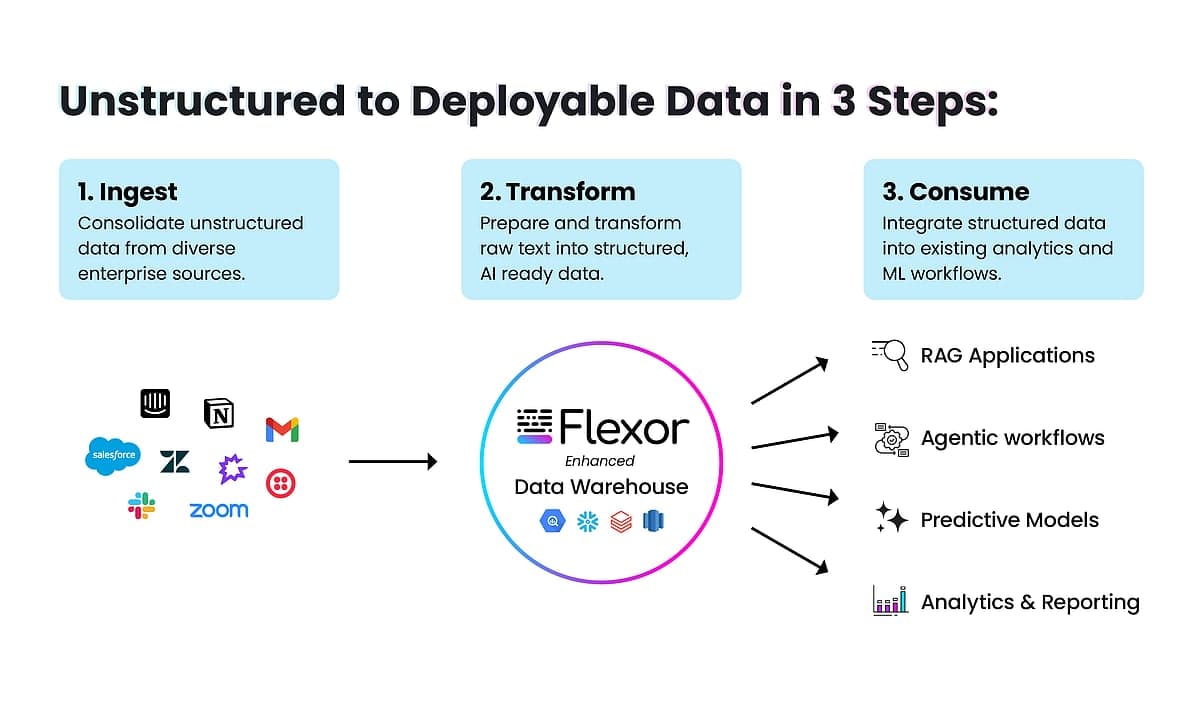 As AI continues to advance, Flexor’s technology is poised to play a critical role in unlocking new possibilities for data-driven innovation by unifying all kinds of natural language sources, integrating unstructured data into decision-making processes, enabling more integration with sophisticated AI applications (like RAG and agentic systems), and creating feedback loops for AI systems.